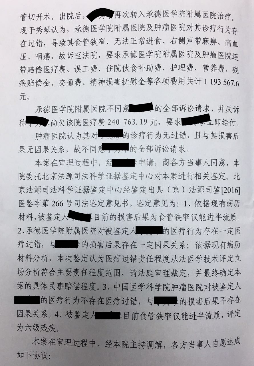 于某诉承德医学院附属医院案调解,医院除已垫付的20多万元外,再支付60万元